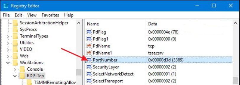 Set-ItemProperty -Path “HKLM:\System\CurrentControlSet\Control\Terminal Server\WinStations\RDP-Tcp\” -Name PortNumber -Value “port-number”